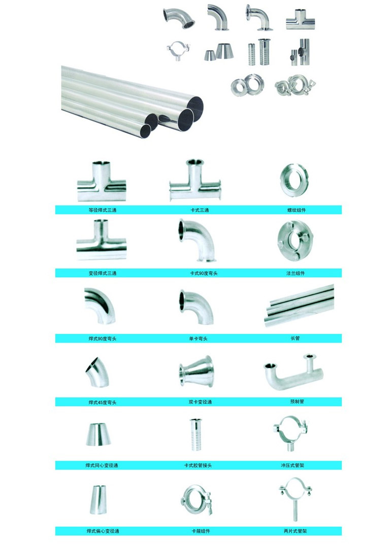 本公司生產(chǎn)的衛(wèi)生管件、接頭是采用日本、德國進口設(shè)備及先進工藝技術(shù)制作,產(chǎn)品制造標(biāo)準(zhǔn)為IDF和DIN,也可按用戶所需標(biāo)準(zhǔn)制造。